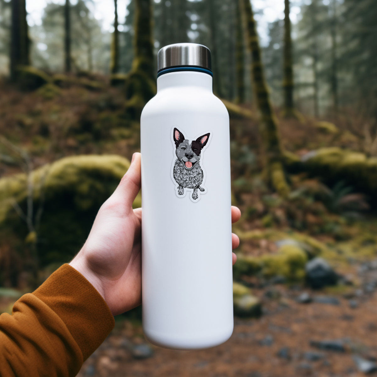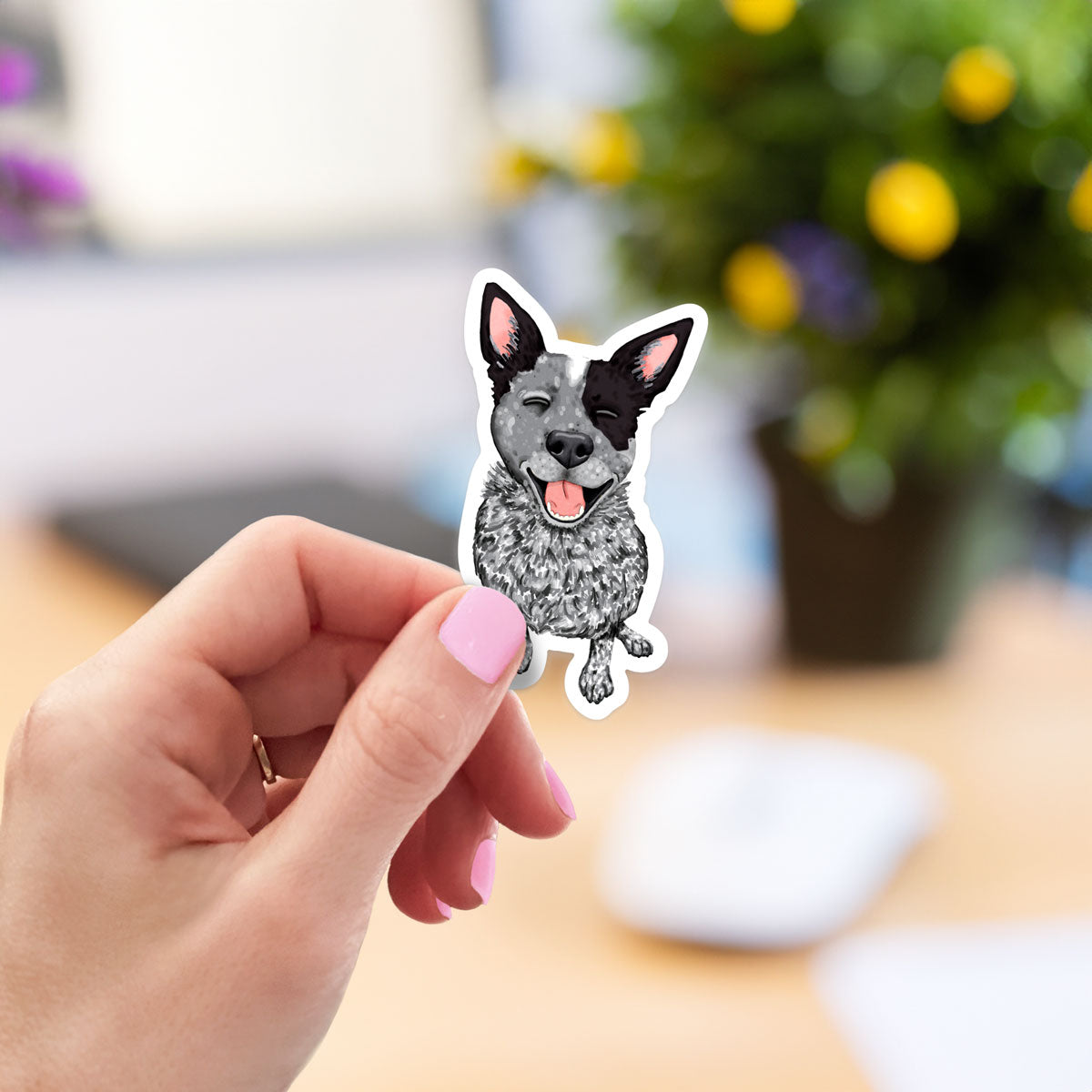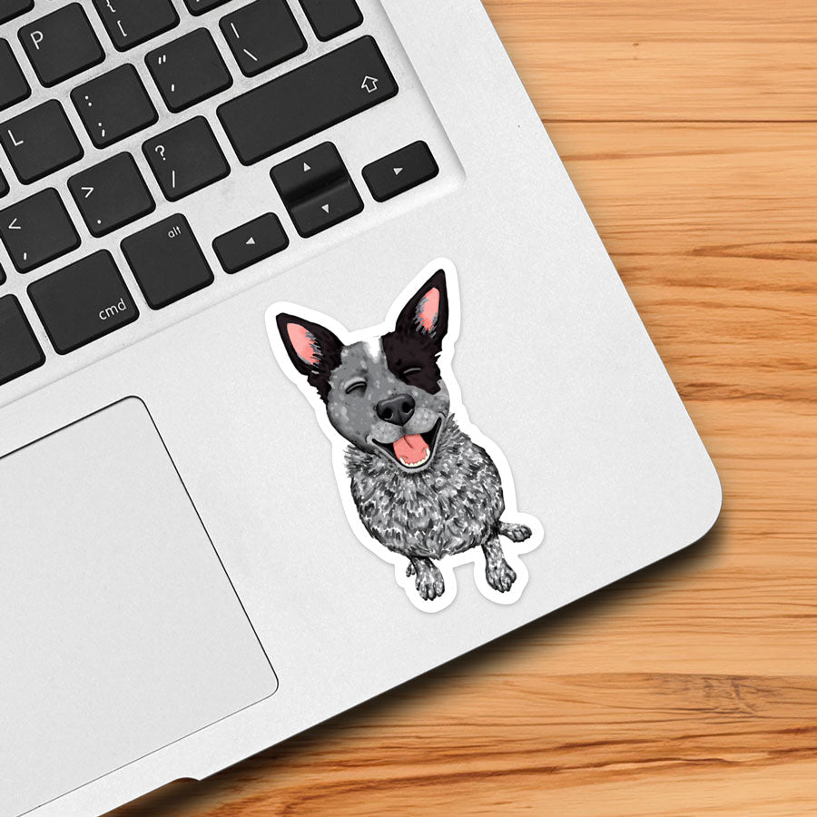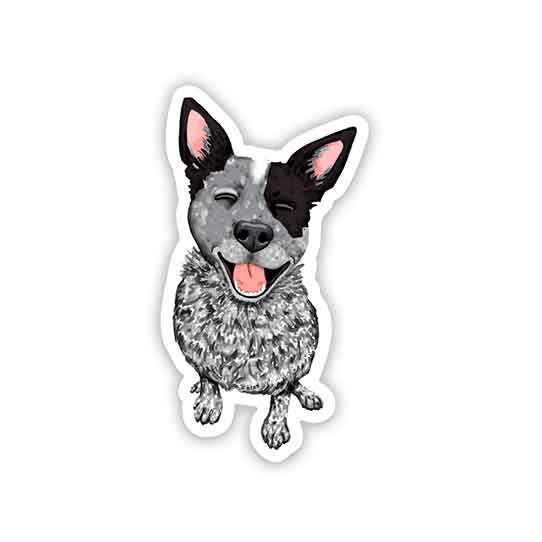 Add a playful touch to your belongings with this cattle dog-themed sticker featuring a happy and smiley Black and White Heeler. Thick, durable vinyl protects your stickers from scratches, water, and sunlight.