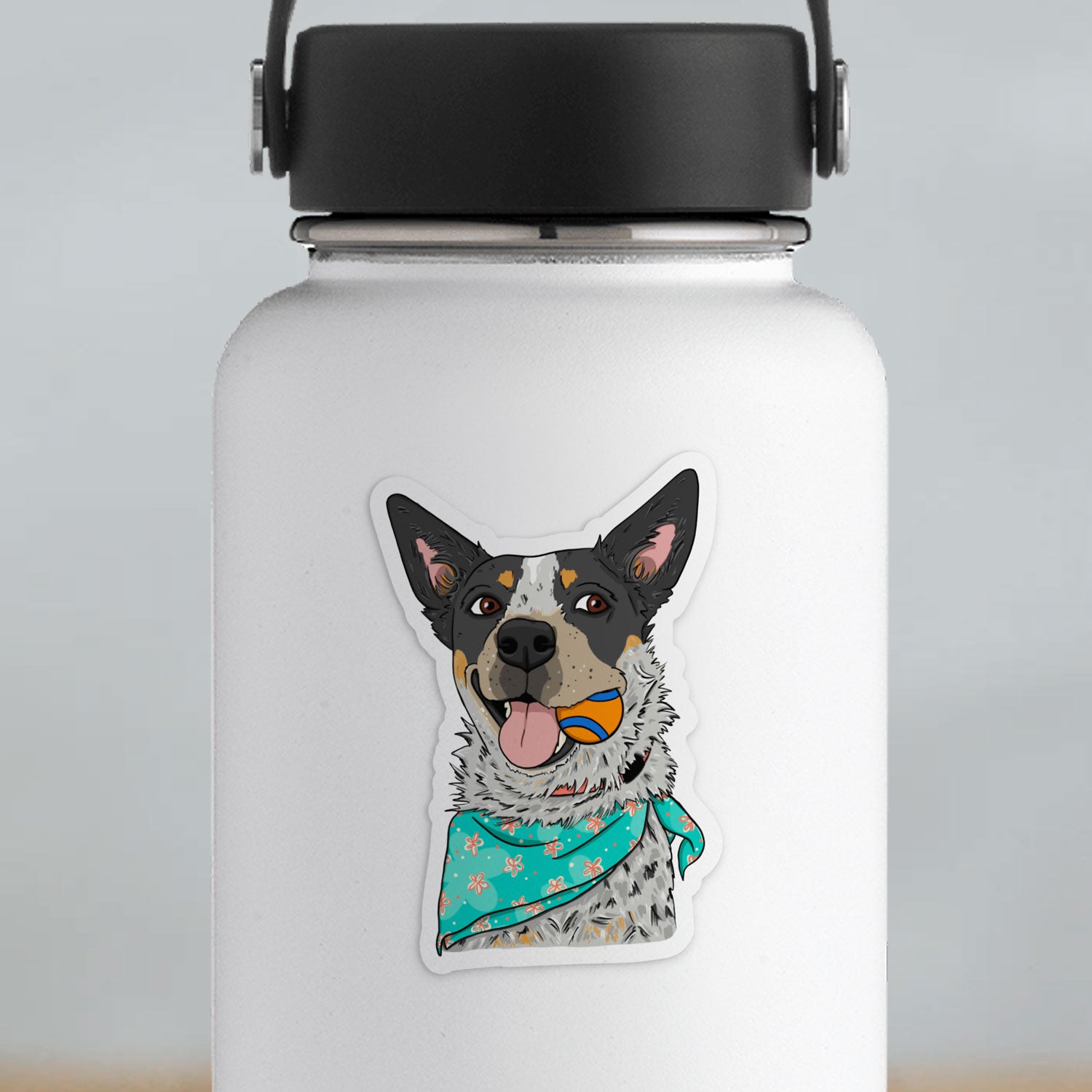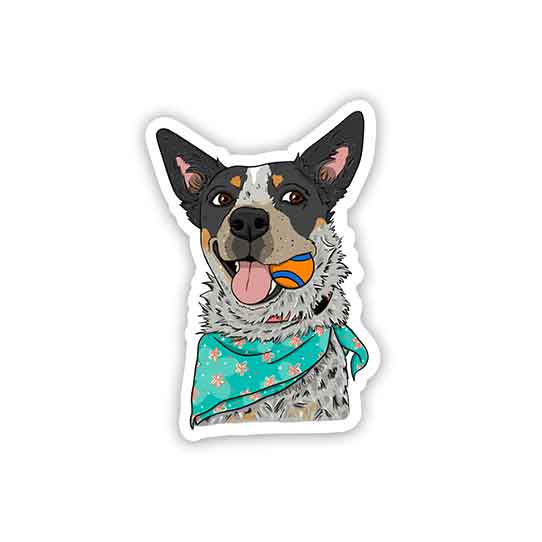 A happy blue heeler puppy wears their best bandana and is ready to play ball! These make the perfect decals to stick on cars, kayaks, bikes, laptops, water bottles, etc. Thick, durable vinyl protects your stickers from scratches, water, and sunlight.
