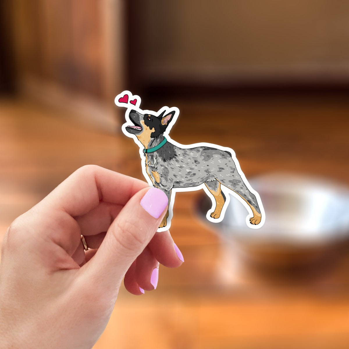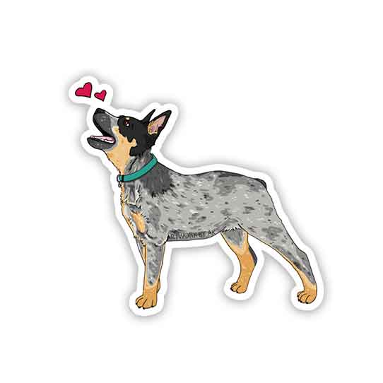 An adorable blue heeler cattle dog looking up at their person with love. Thick, durable vinyl protects your stickers from scratches, water, and sunlight.