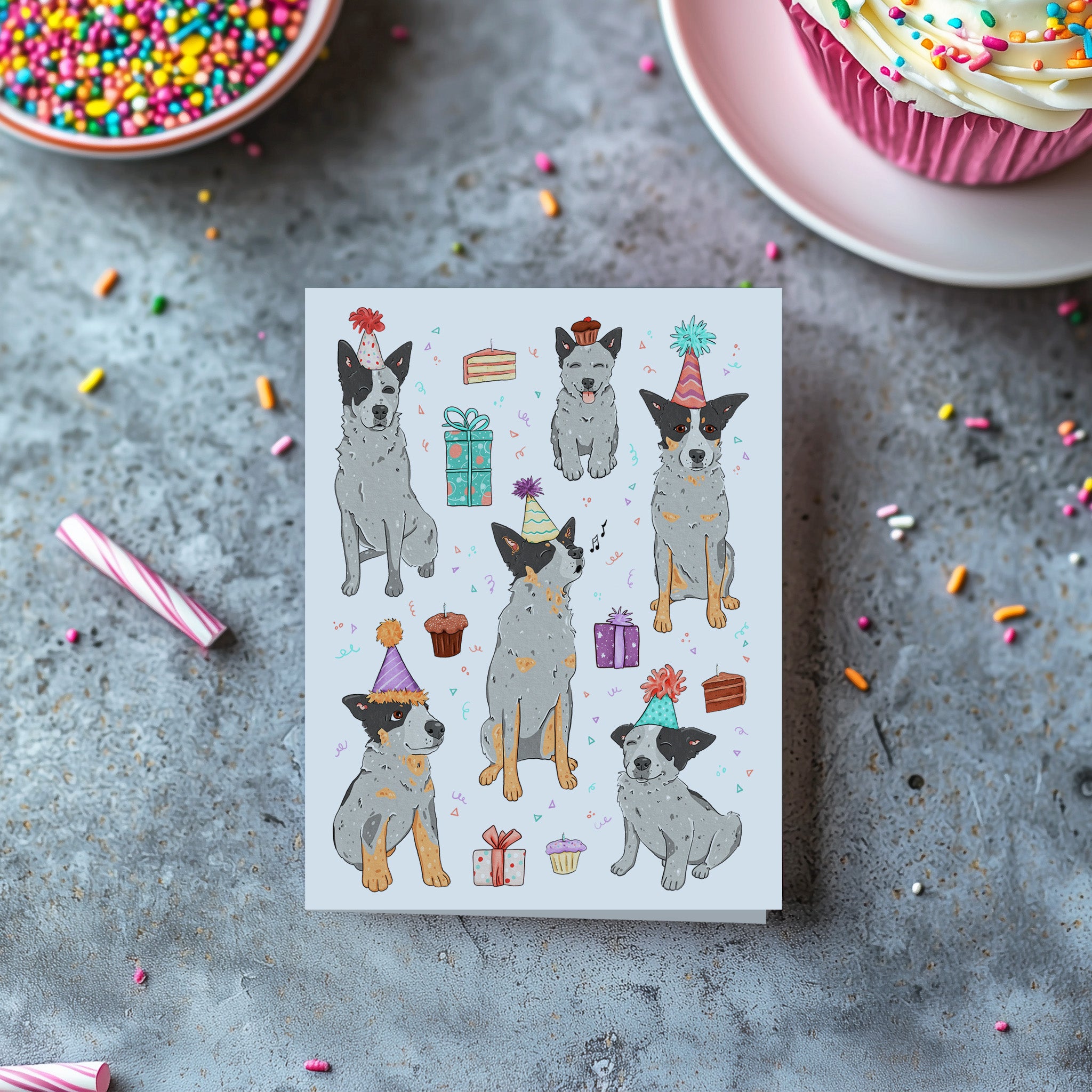 Blue Heeler Party Birthday Card