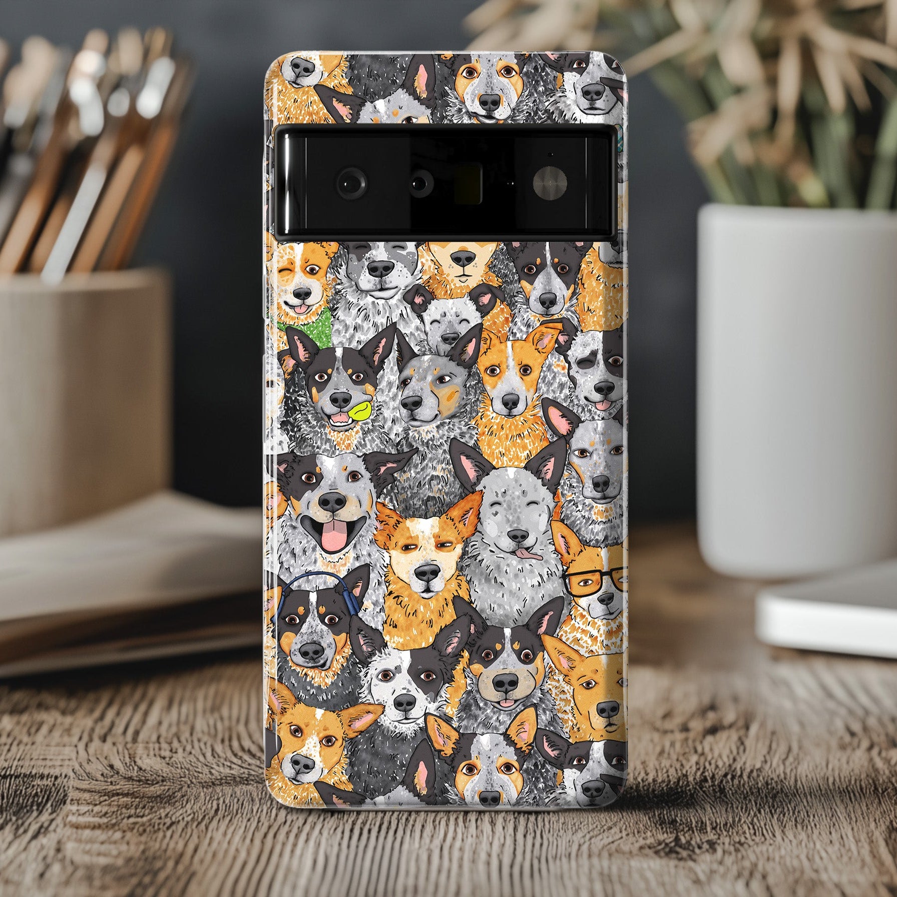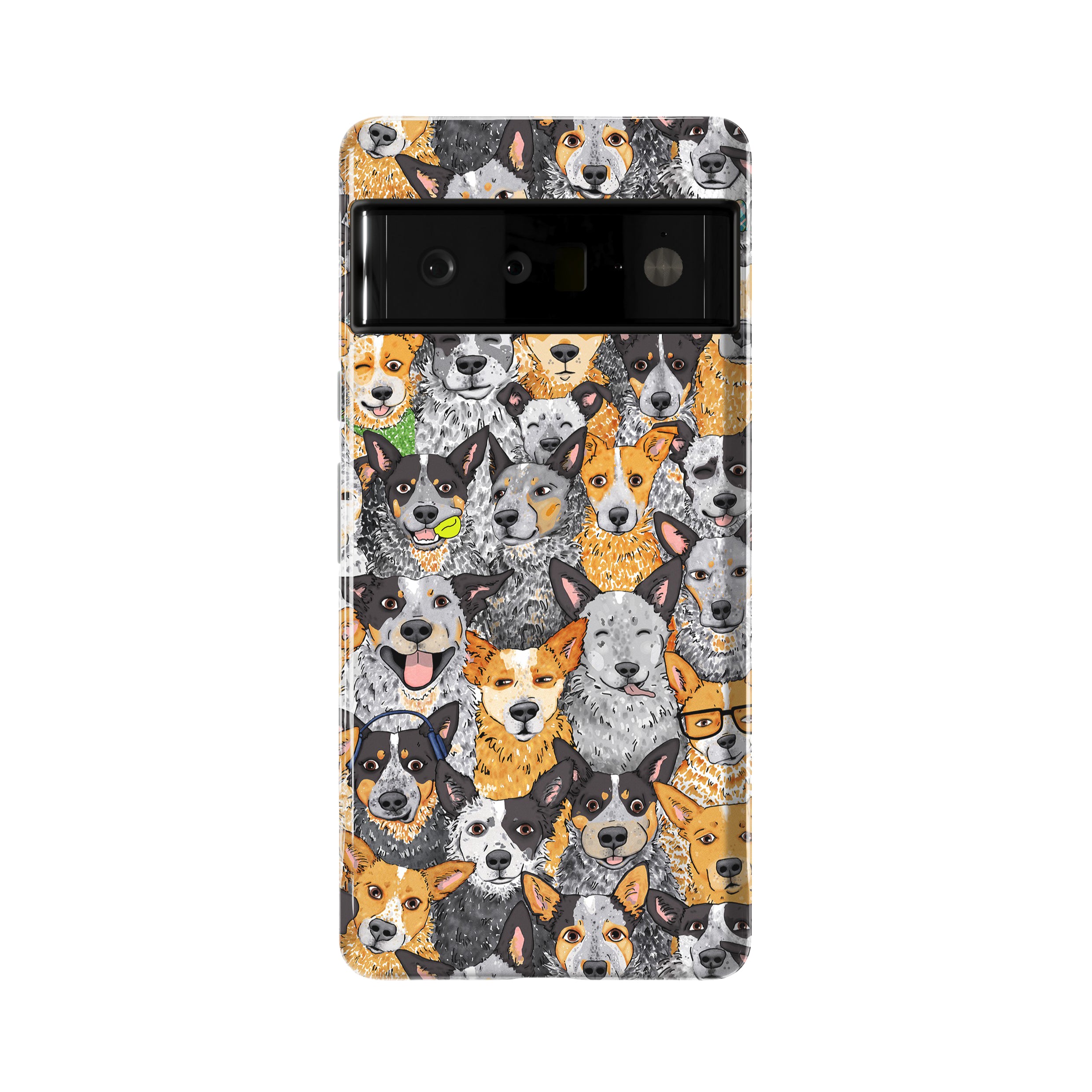 A fun cattle dog all-over-print of adorable blue and red heeler faces