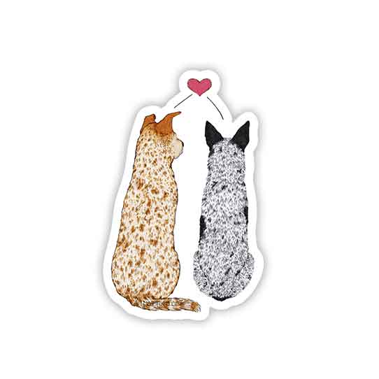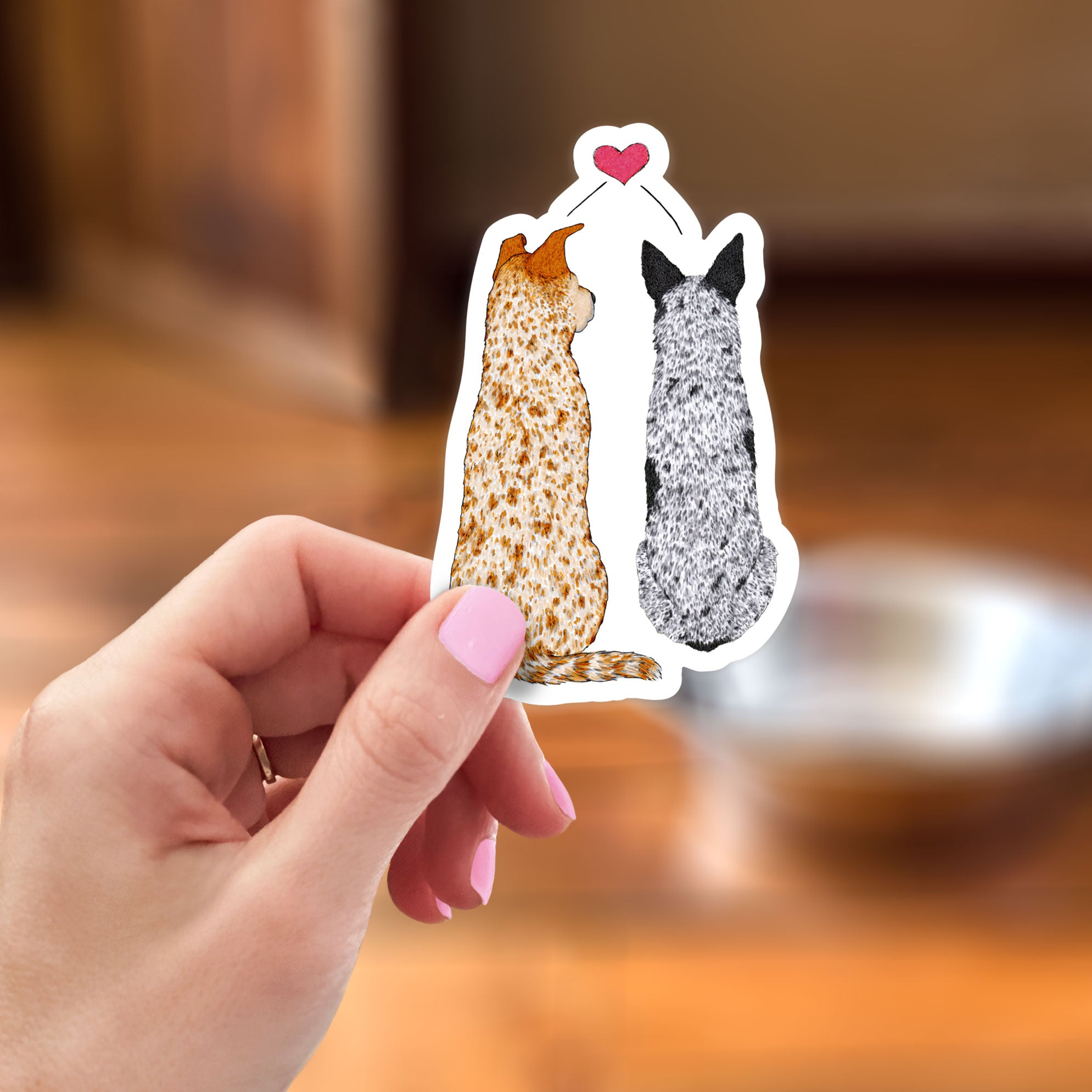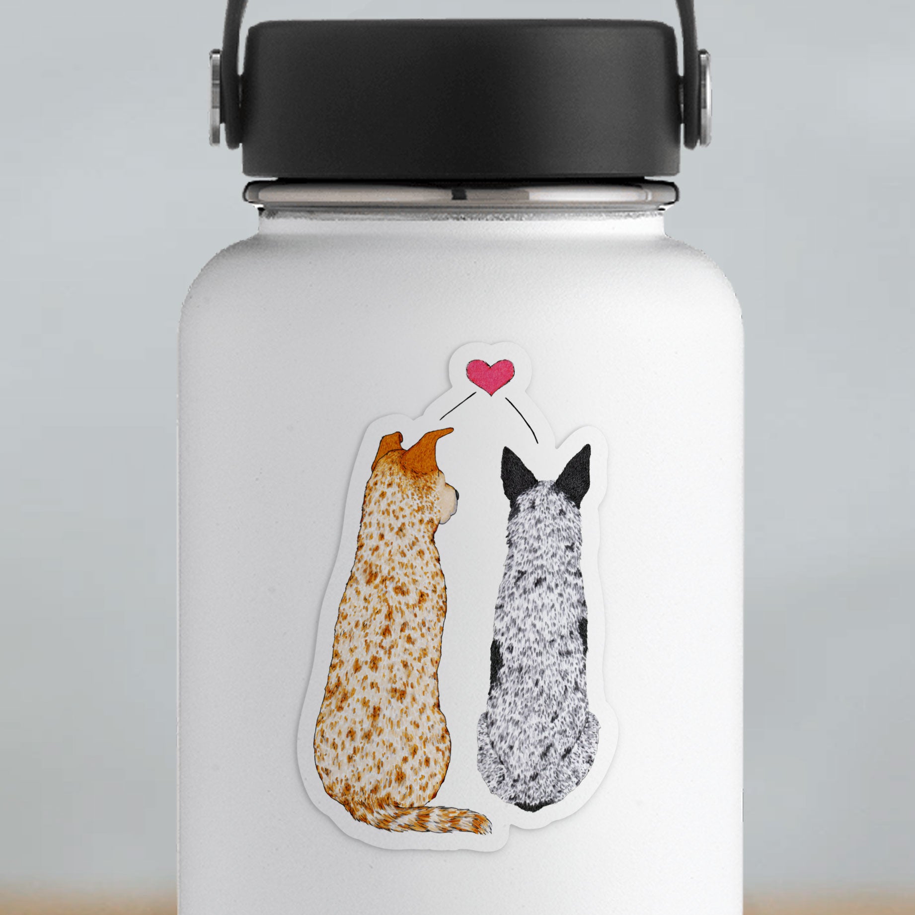 The perfect pair of heeler dogs and the love they share. Thick, durable vinyl protects your stickers from scratches, water, and sunlight.