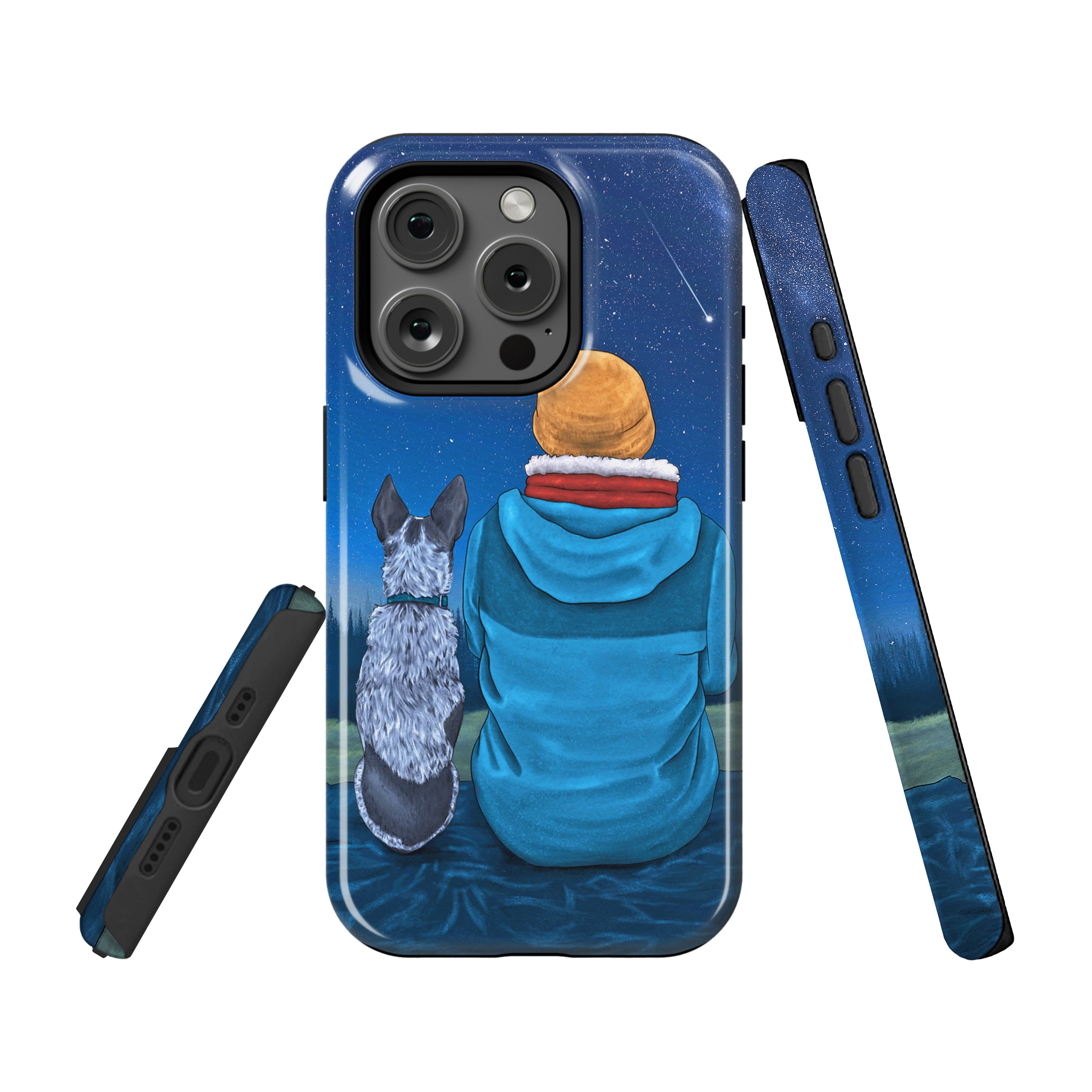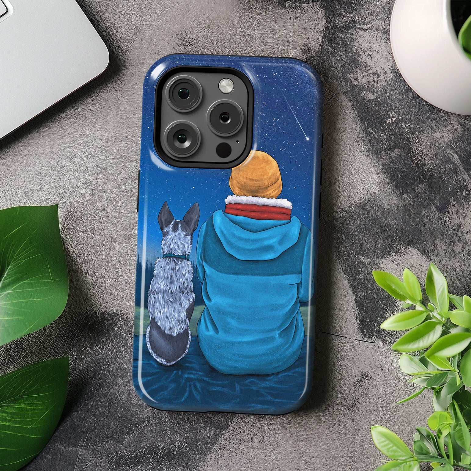 A cattle dog puppy and their human found a cozy spot to do some star gazing on a beautiful evening.