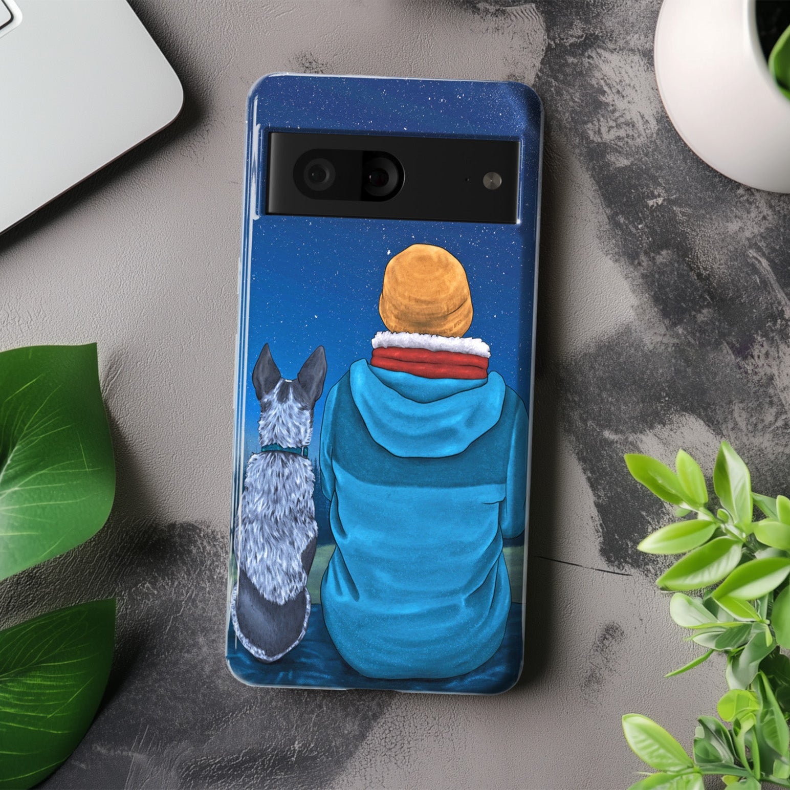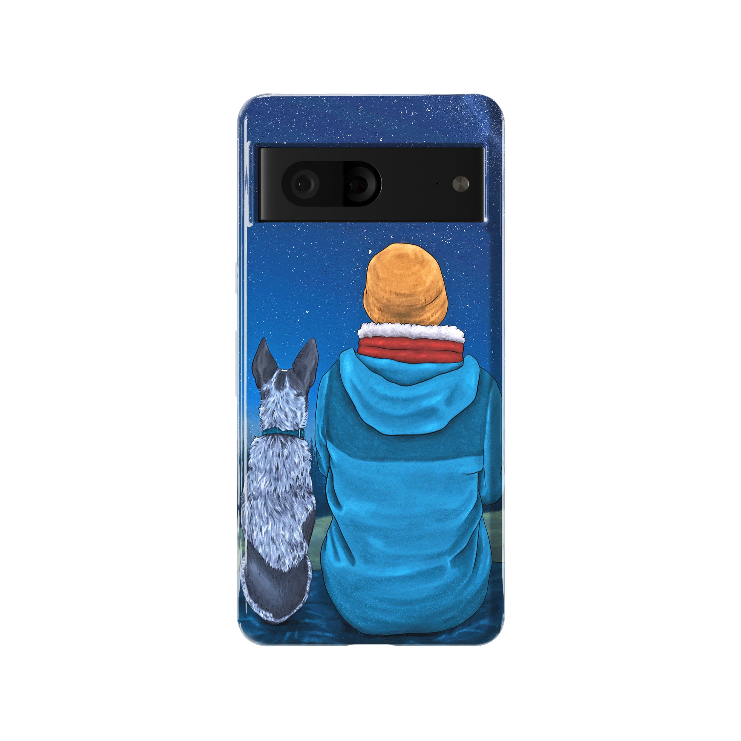 A cattle dog puppy and their human found a cozy spot to do some star gazing on a beautiful evening.