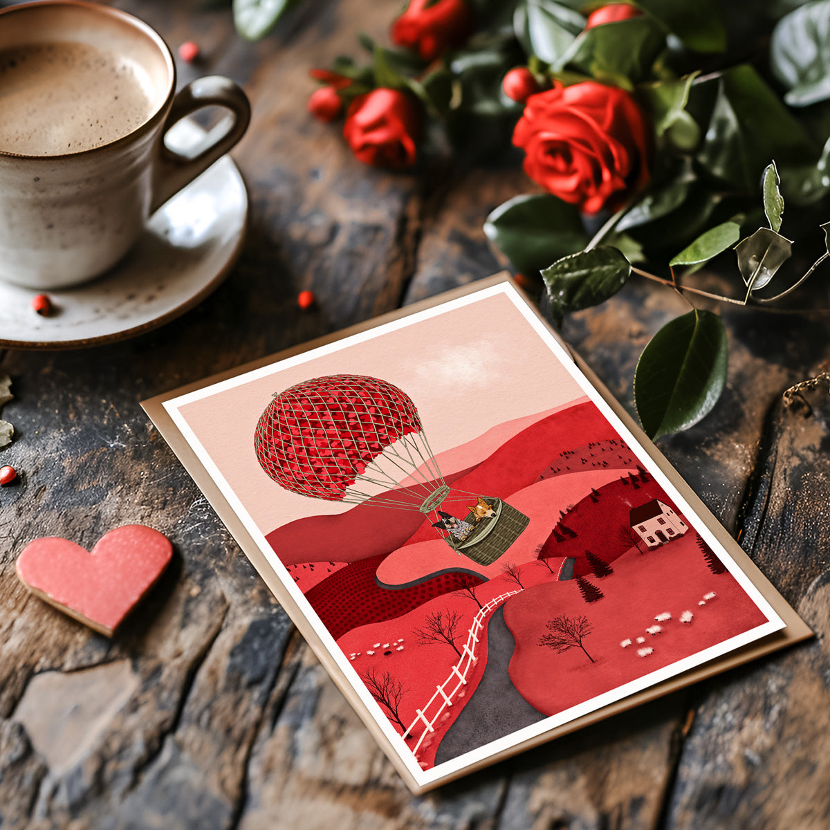 Heeler Hearts Air Balloon Card