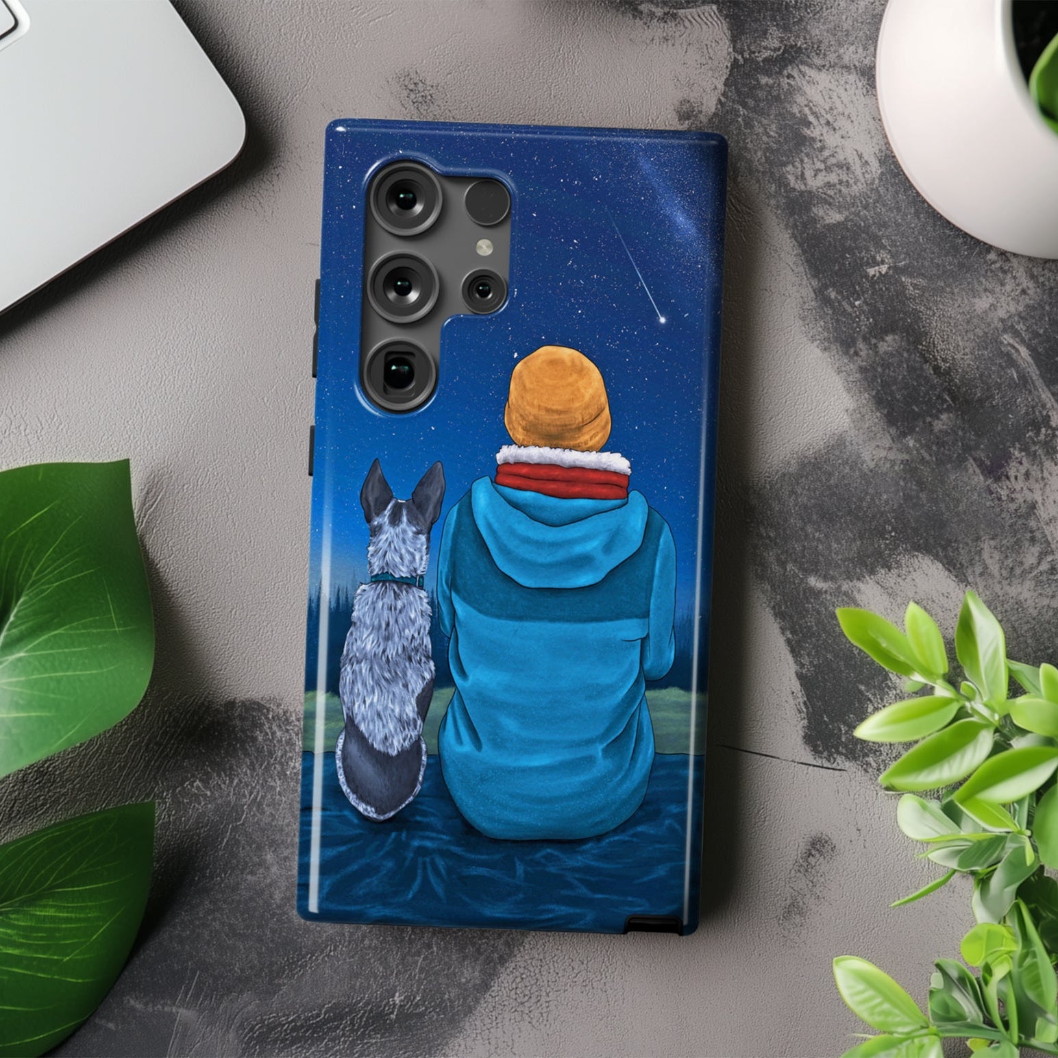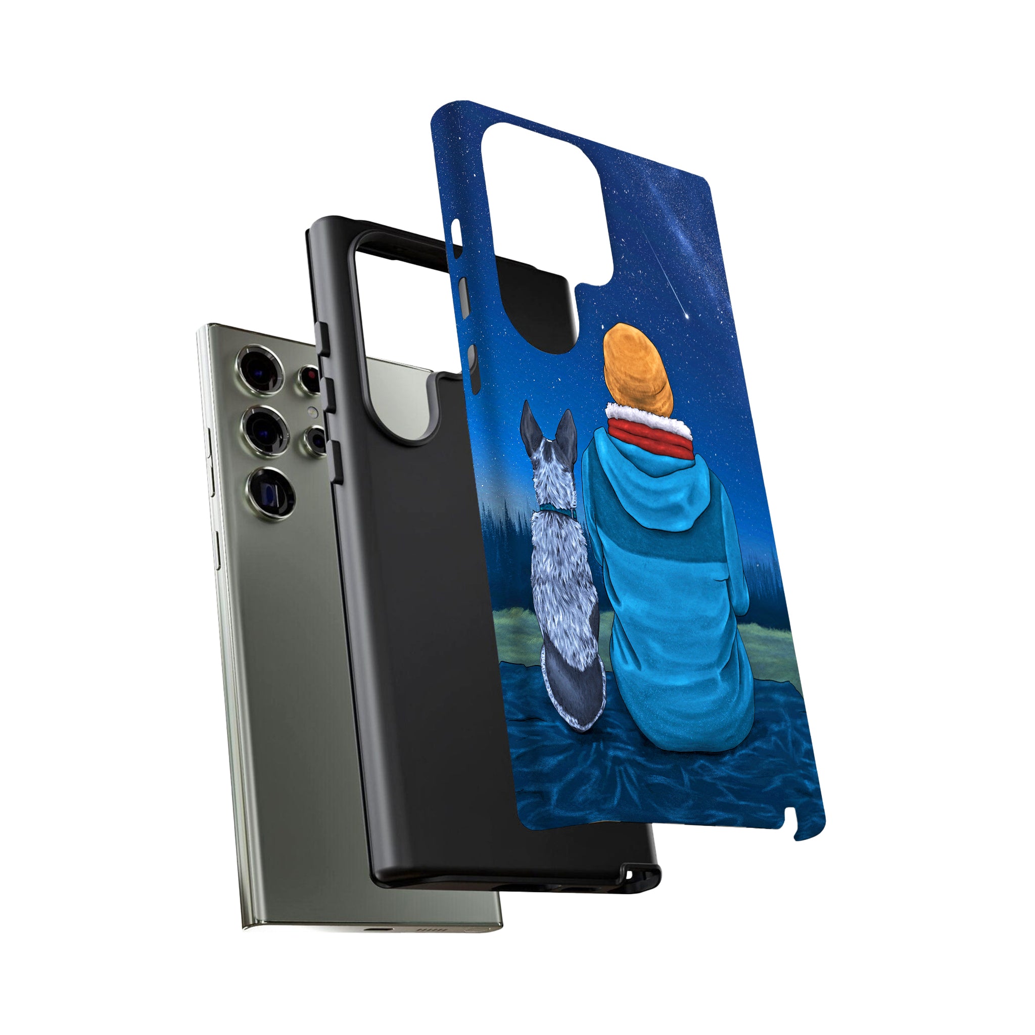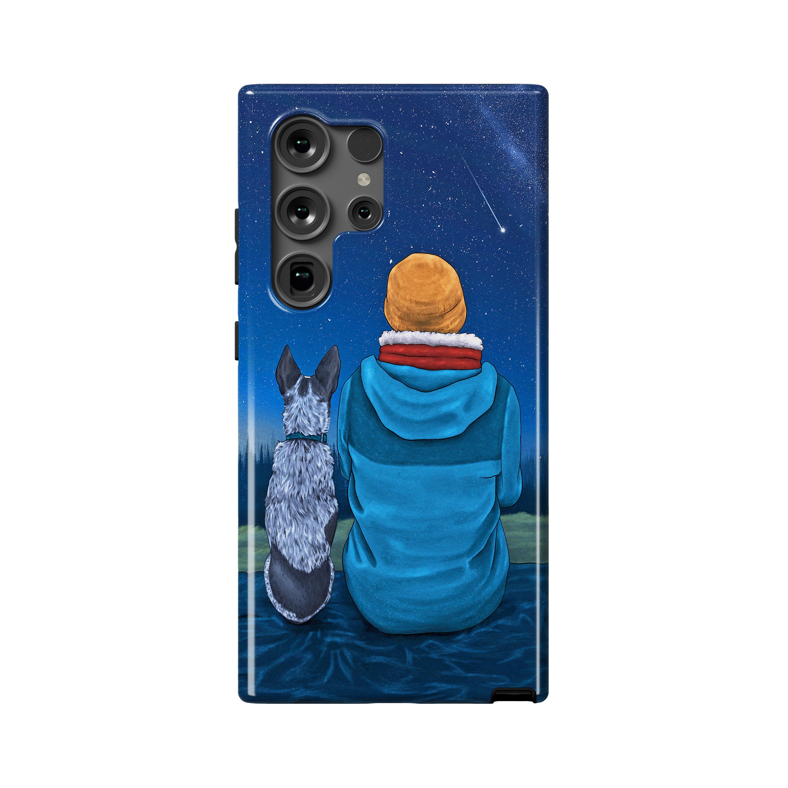 A cattle dog puppy and their human found a cozy spot to do some star gazing on a beautiful evening.