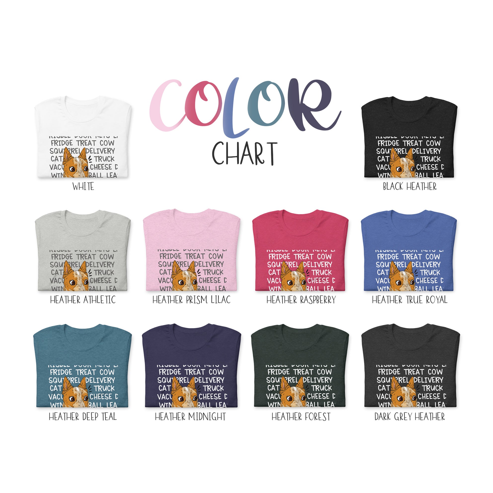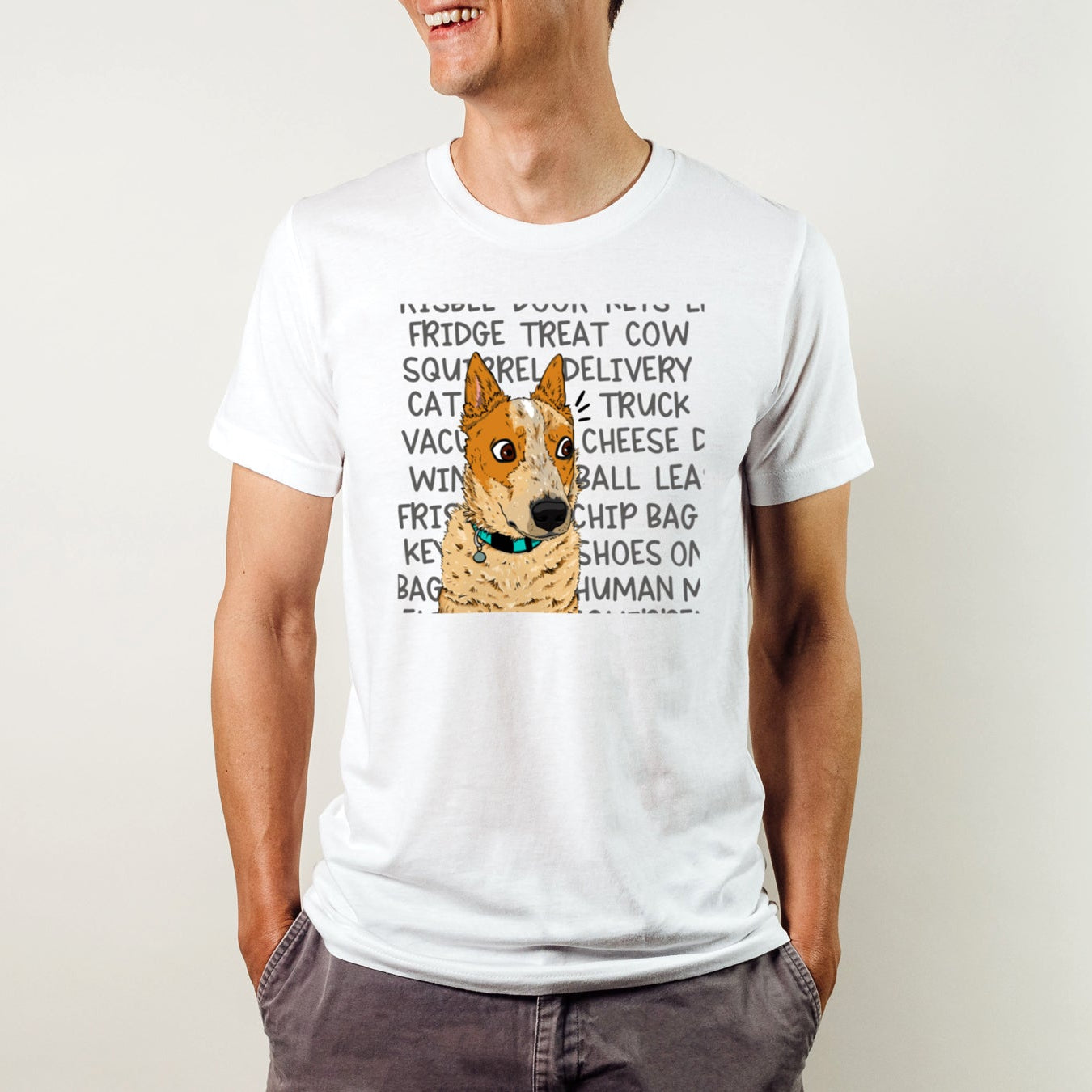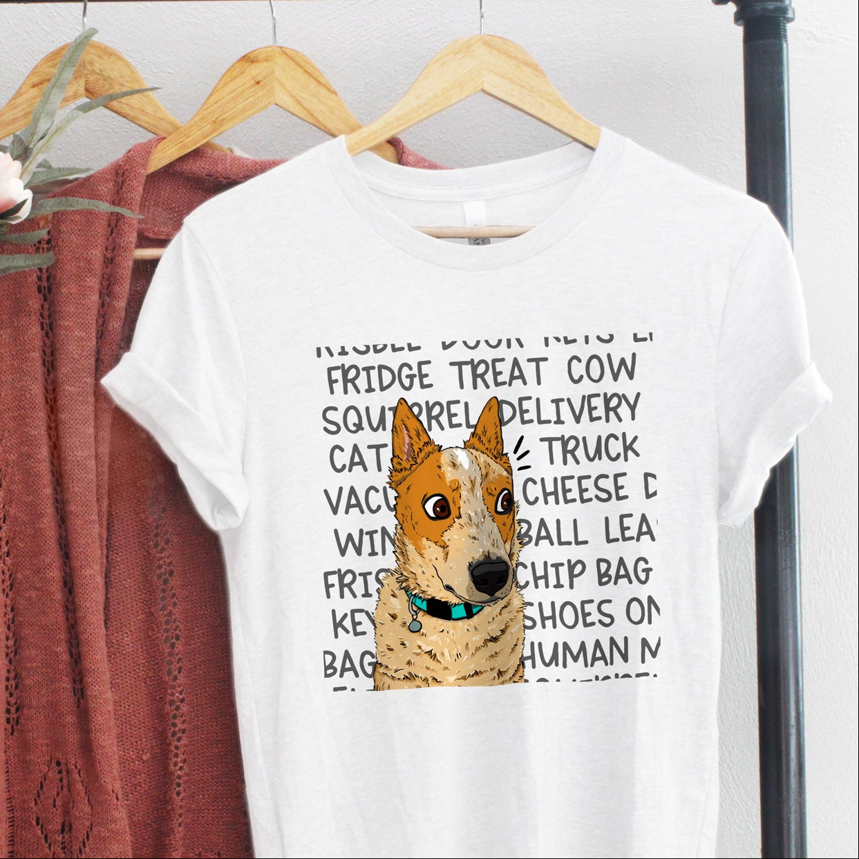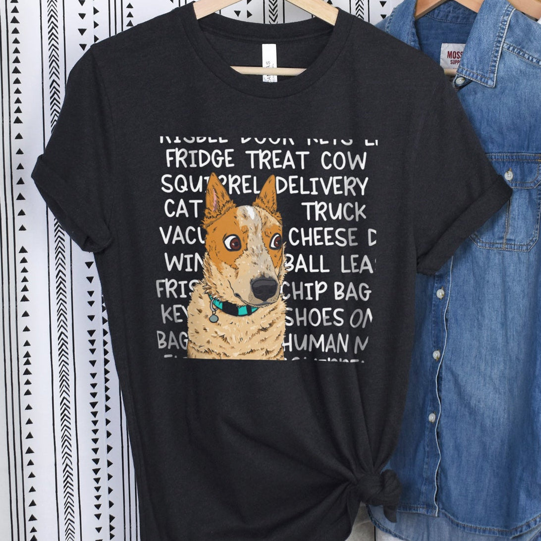 For all red heeler lovers this 'ACD Mind' shirt hilariously captures a cattle dog face on alert and some of the every day things that can quickly grab their attention! This is a must-have tee for every red heeler owner.